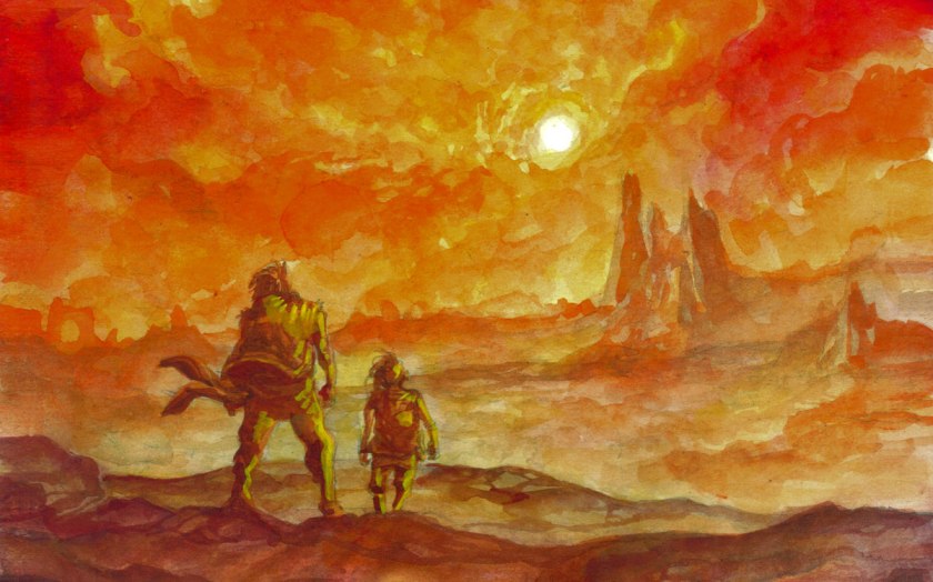 Altona é o meu planeta favorito do Sabre. Acho interessante até pra introduzir jogadores aos cenário, já que tem a opção familiar de se enfiar num buraco na terra atrás de tesouro (apesar de ser uma faca de dois gumes, de certa forma. Brigada não é D&D com mechas). E a arte do cabeçalho é de Shadrach? Eu quero isso em mãos o quanto antes!