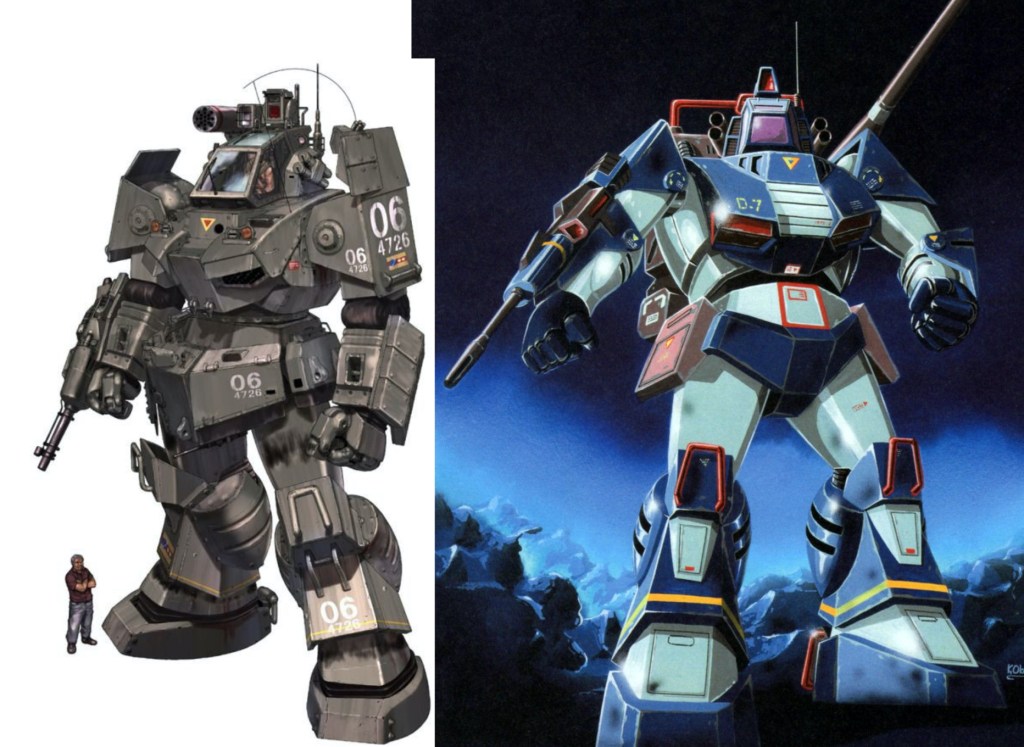 * Não apenas dele, é claro. Jogos como Fire Emblem também foram importantes nesse sentido. Mas há pelo menos um design da franquia escancaradamente baseado em Dougram: os Angriff (Razangriff e Randgriz), mas mesmo eles procuram dar um aspecto próprio ao design…