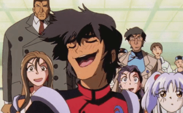 Nos animes: Gai Daigouji, de Martian Successor Nadesico. O melhor personagem da série, a ponto de muita gente parar de assisti-la quando ele… AHAM! Essencialmente, Gai é um fã hardcore de animes de super-robô e, ao se deslumbrar com o sonho de uma vida, passa a agir como um fugitivo dos velhos animes de Nagai ou Ishikawa — com frases de efeito, postura dramática 100% do tempo e muita canastrice! Infelizmente, ele estava em uma série real robot e…