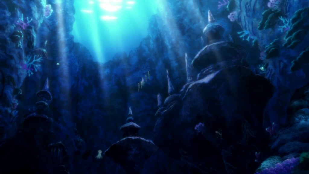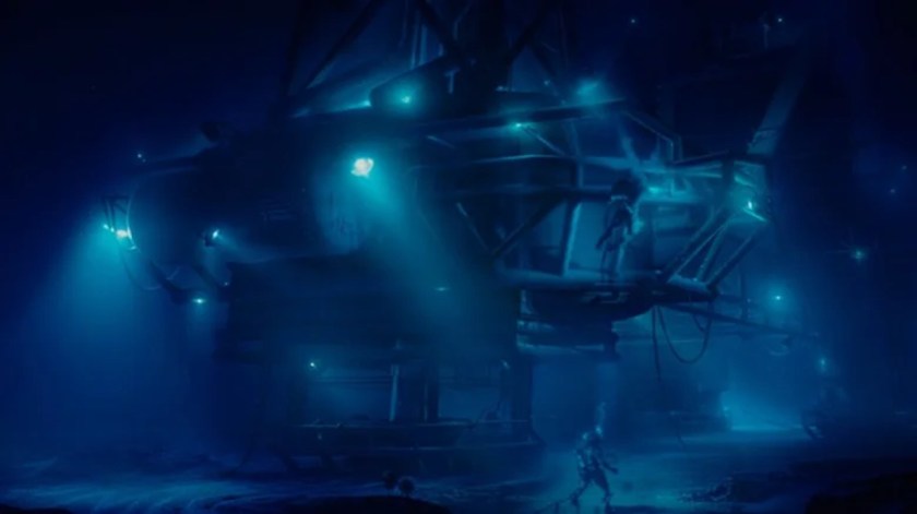 NO TOPO: Imagem de O Segredo do Abismo, de James Cameron. Não encontrei tantas bases submarinas em anime para servir de referência, infelizmente.